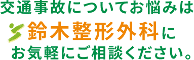 鈴木整形外科では、むち打ちなどの交通事故による症状に対して、保険適用による通院・治療が可能です。